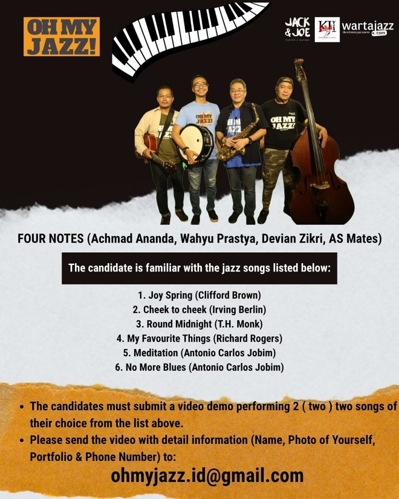 Pendaftaran dibuka hingga 25 Agustus 2025 dan seluruh proses registrasi serta informasi lebih lanjut dapat diakses melalui Instagram resmi @Ohmyjazz.id.